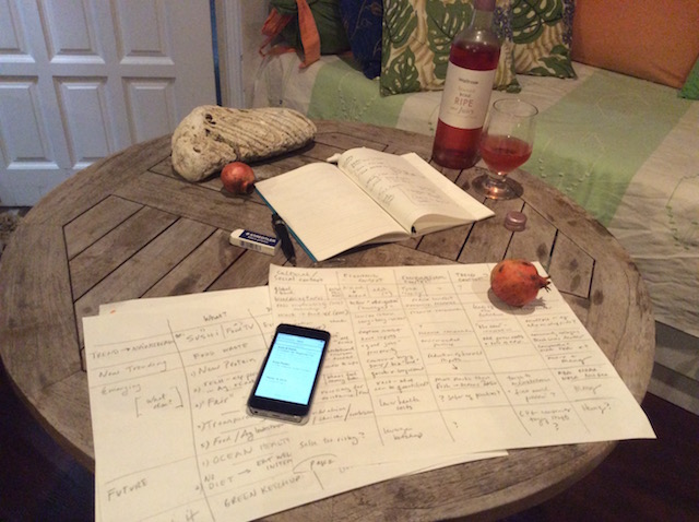 I like the familiar in Barbados: a regular shopping list that includes flying fish; papaya; incredibly sweet and perfectly sized bananas; the traditional bread which is puffy and has too much sugar in it; and local staple vegetables like okra, tomatoes, cucumbers, and lovely, floppy, variegated-leaved lettuce; and black belly lamb (shoulders, ribs, great).